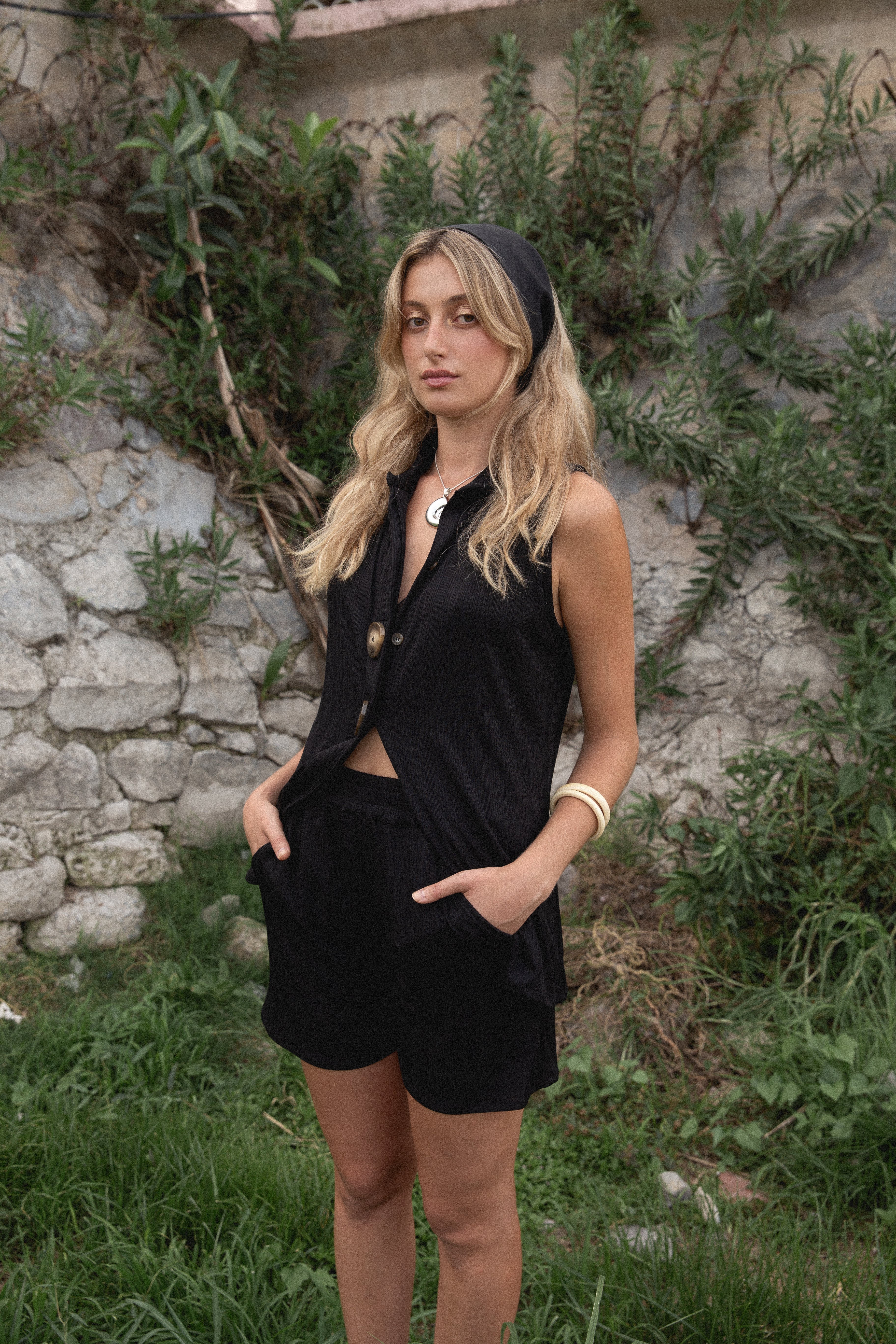 Pequeñas ediciones, tejido suave, y una caída impecable que estiliza sin esfuerzo. Diseñado para mujeres que visten con intención. El set fue creado para ofrecer ligereza, movimiento y una silueta que se tiene atemporal. Su textura sutil y los botones interiores hacen que todo fluya sin esfuerzo.